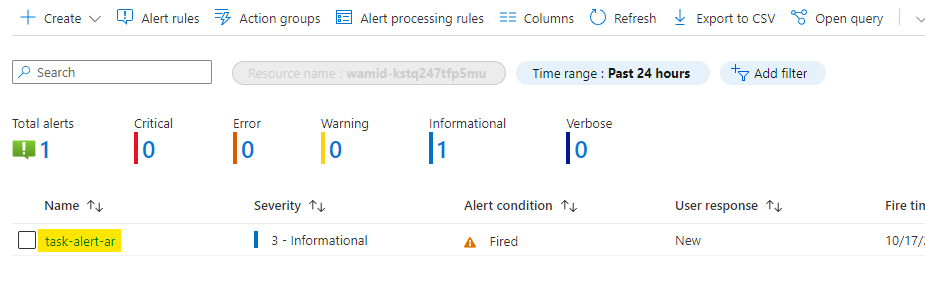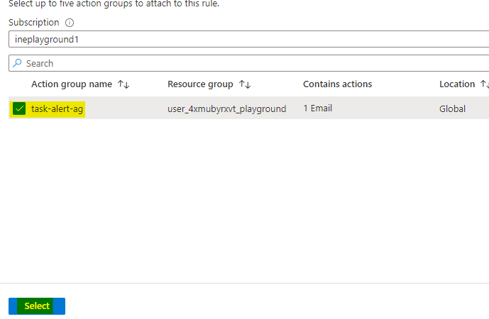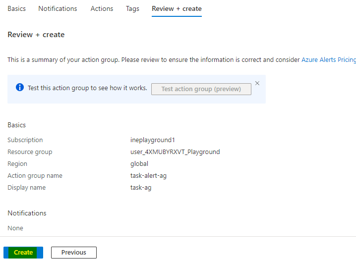 The goal of this task is to configure and test an alert for an existing resource. This includes creating an action group and an alert rule; and triggering the alert.