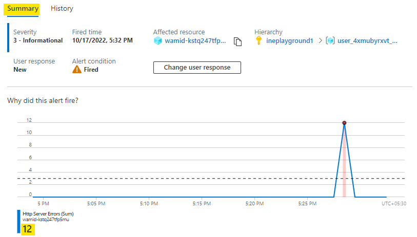 You can check the summart of alert, there were 12 server error at the time of trigger.