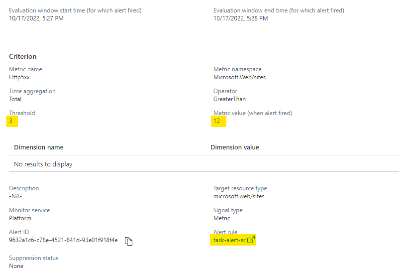 Go back to the alerts of web app and you can see that one alert is triggered. Open this triggered alert.