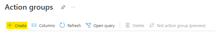 Navigate to the Alerts of your web app and open the Action group as highlghted below.