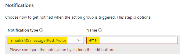 Name the notification as email and select the type as Email/SMS message/PUSH/Voice.