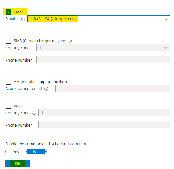 Select the email option and provide your email. Click on OK to save this notification setting.