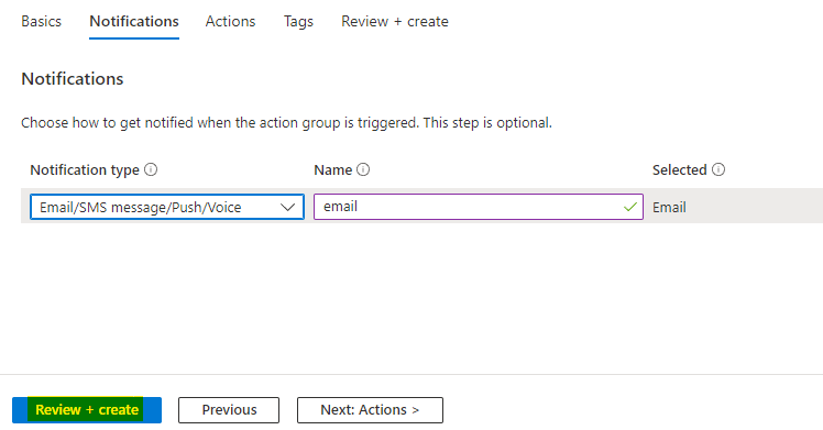 Name the action group as task-alert-ag and click on Next to configure the notifications.