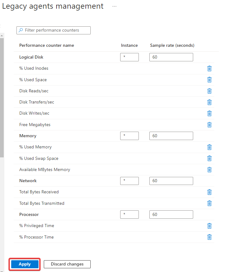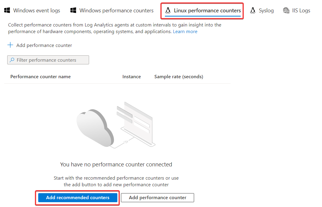 Select Linux performance counters from the top menu and click on Add recommended counters.