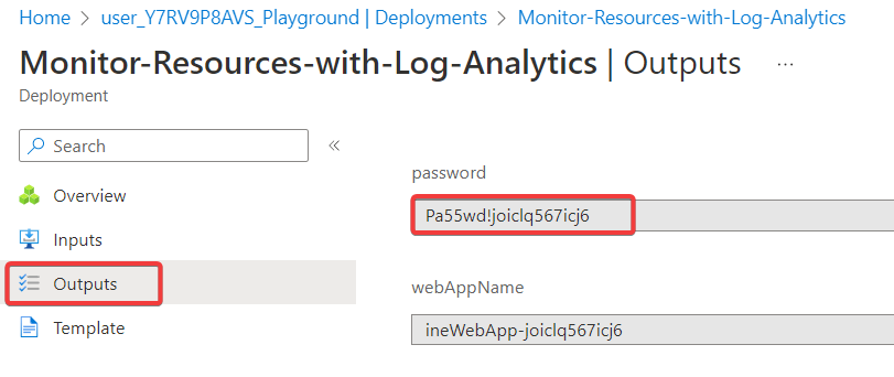Click on Outputs and copy the password.