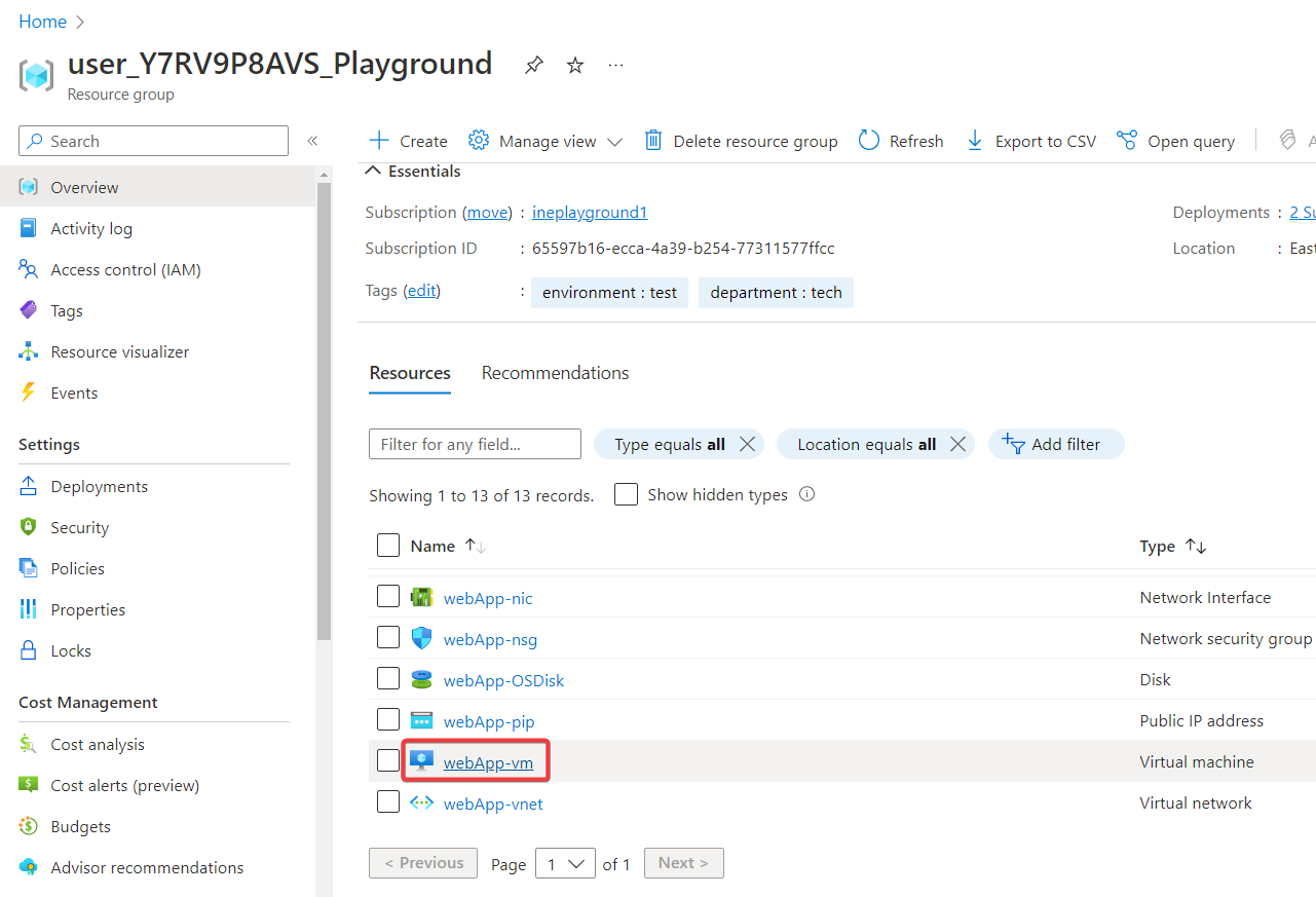 Navigate back to the resource group and click on webApp-vm.