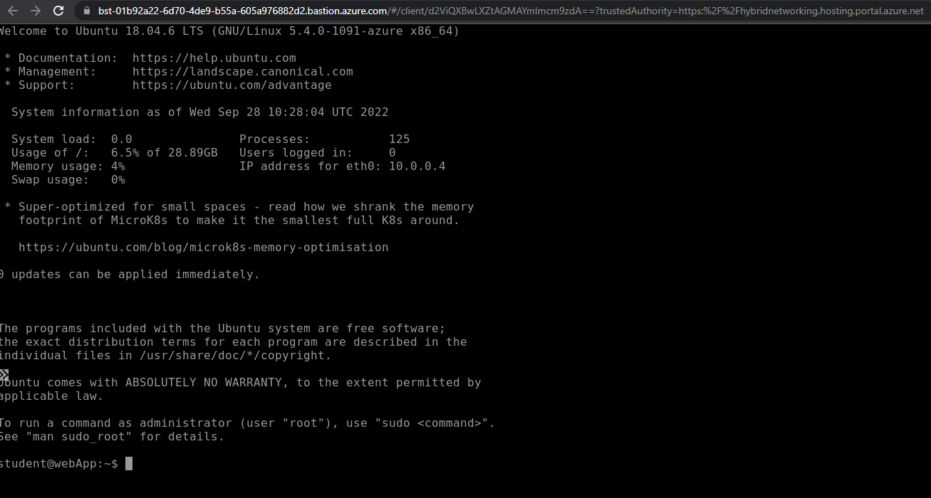 Successfully connected to the virtual machine via bastion.