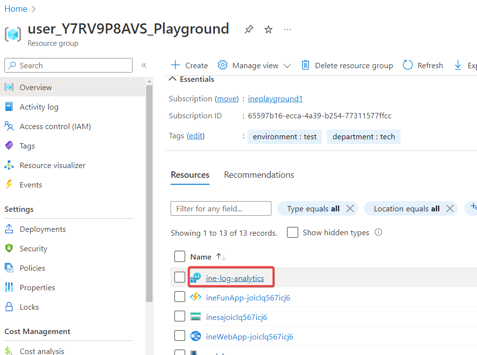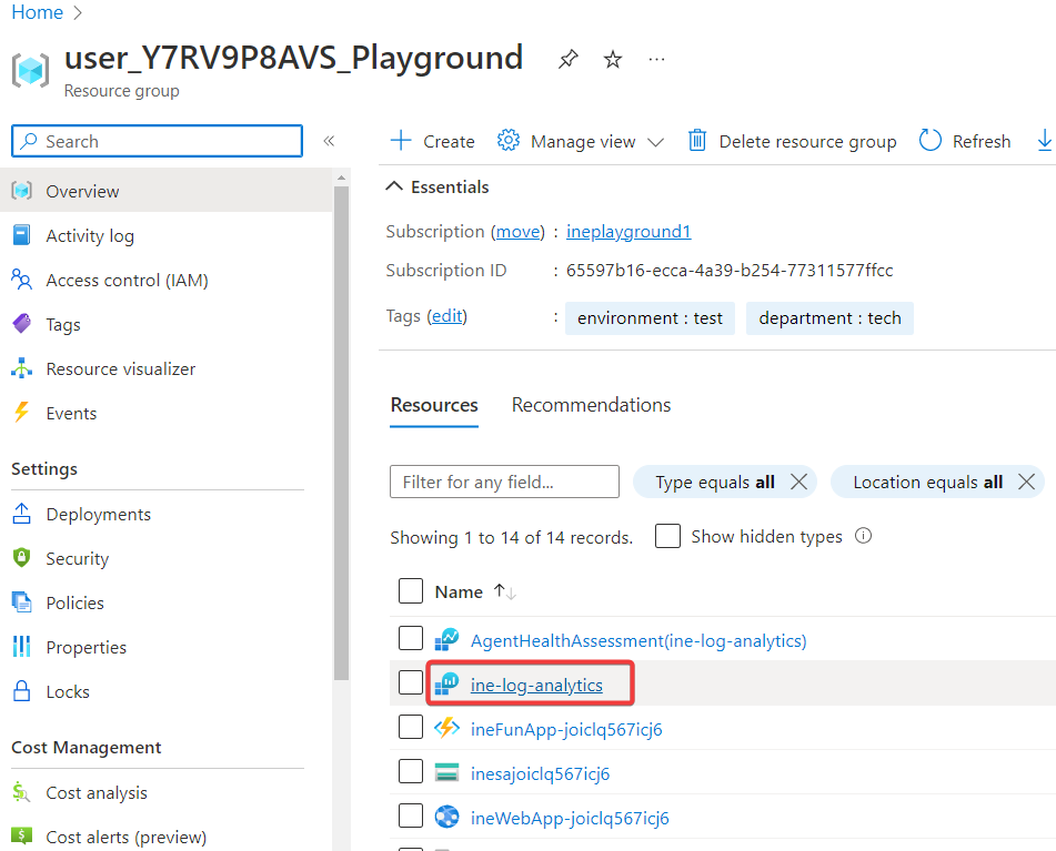 Navigate back to resources and click on Log analytics workspace again.