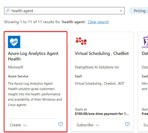 Search for a health agent and click on Azure Log Analytics Agent Health.