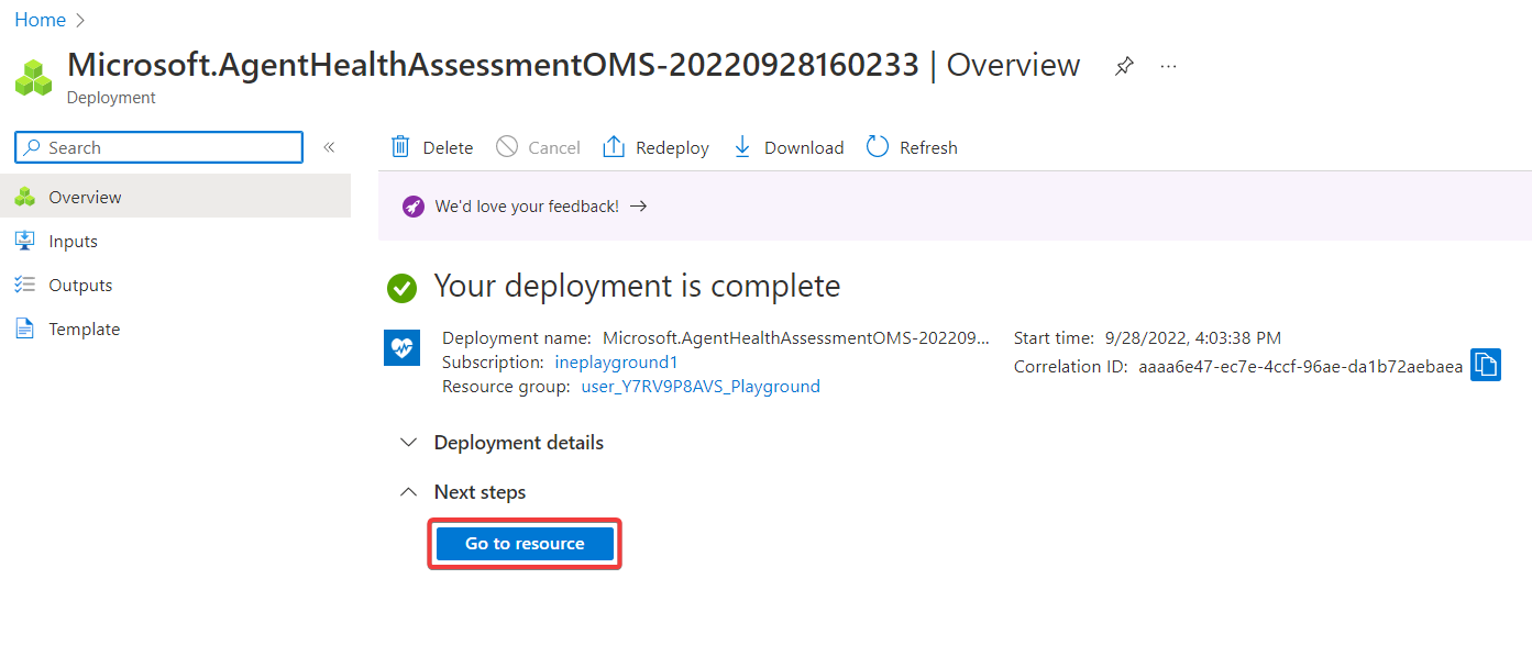 Successfully deployed Azure Log Analytics Agent Health. Now click on Go to resource.