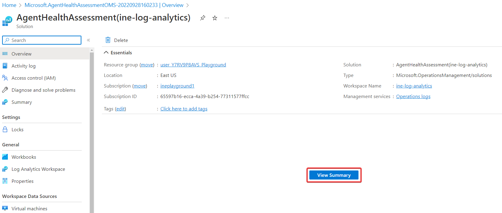 Click on Workspace summary from the left navigation menu.