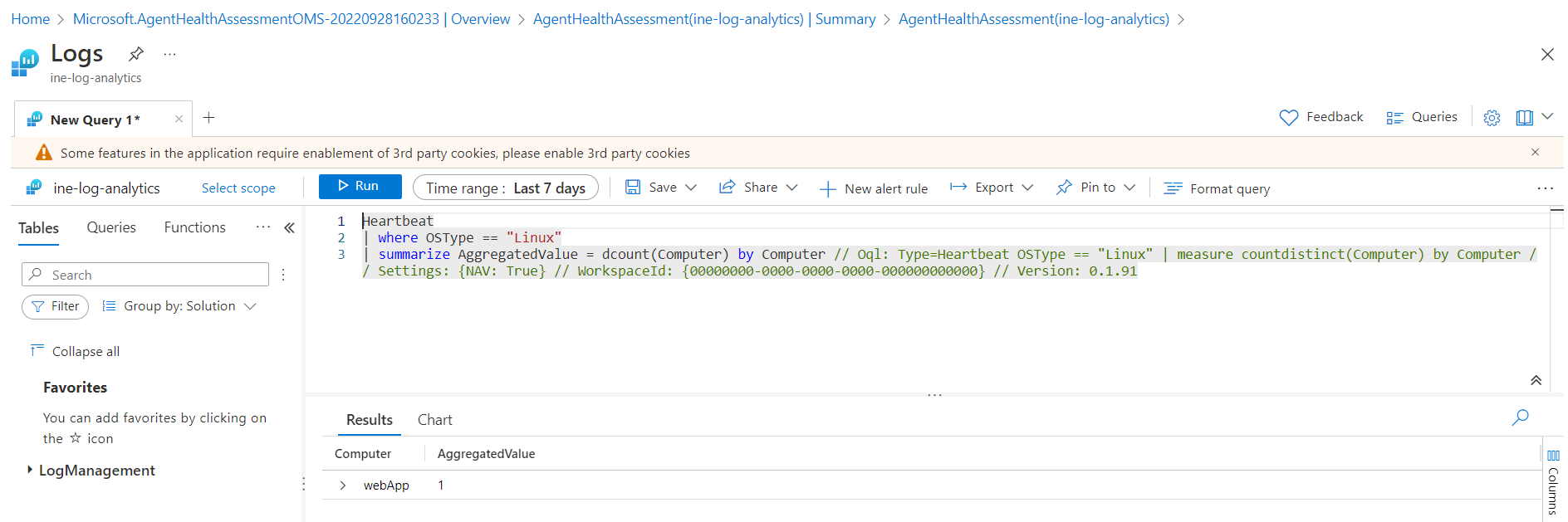 Copy and paste the log analytics query. Select the whole query and click on Run.