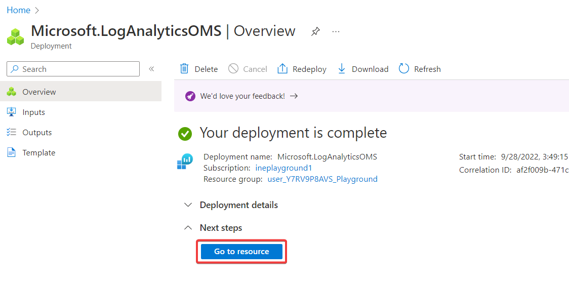 Navigate back to the resource group and click on the log analytics workspace.