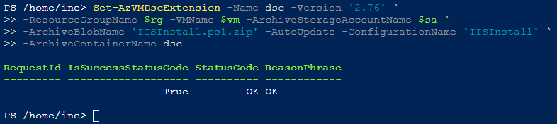 Set-AzVMDscExtension -Name dsc -Version '2.76' `