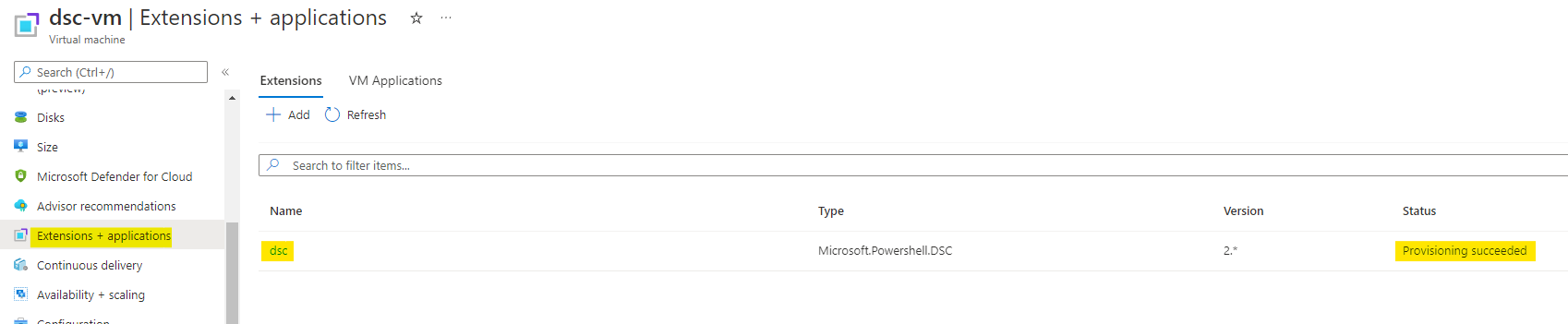 After the extension is successfully provisioned, you can go to the extensions of the VM and verify the same.