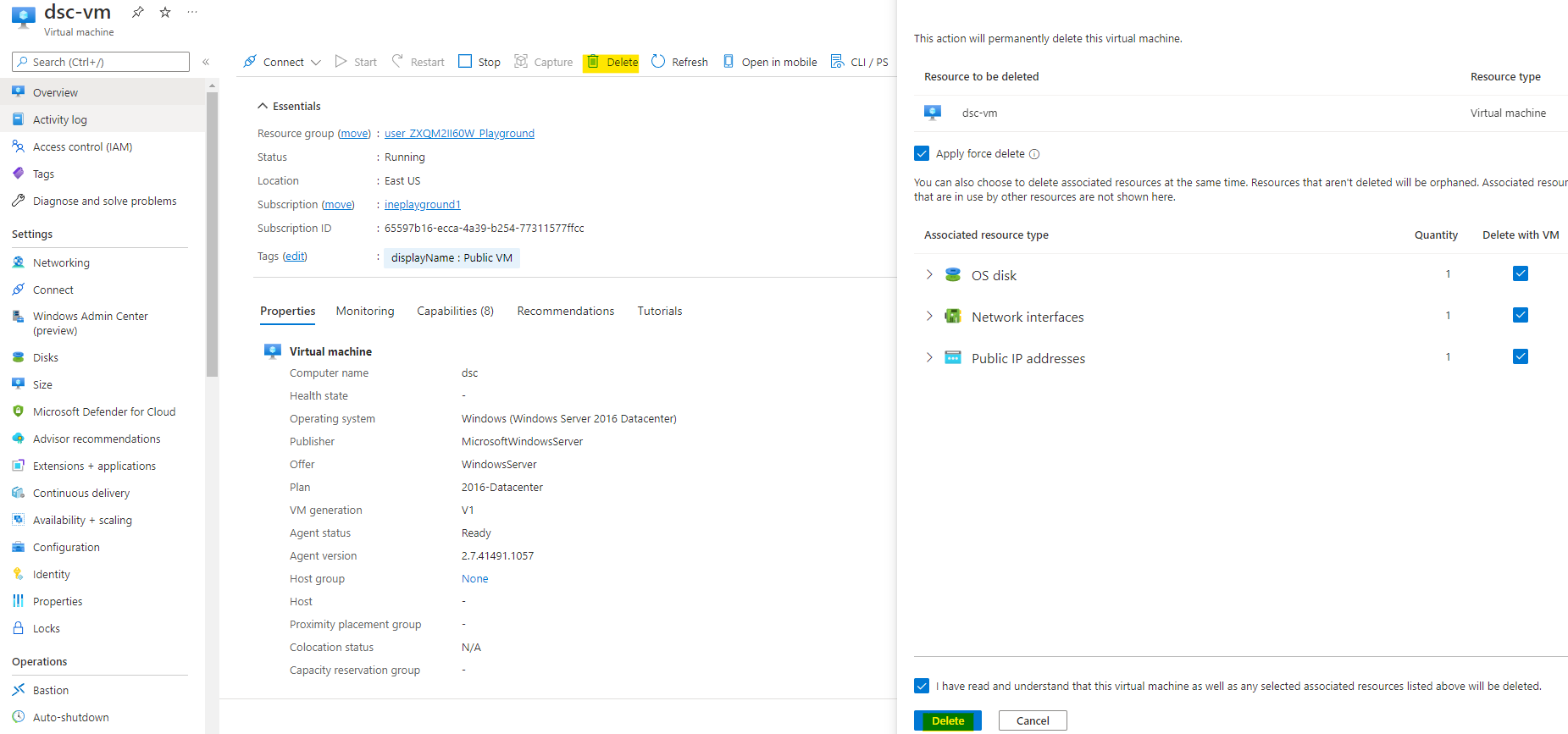 You can go and delete the virtua machine which was pre deployed and also all the related resources.
