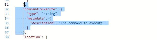 Also remove the command to execute parameter. We will directly use the command in extension properties.