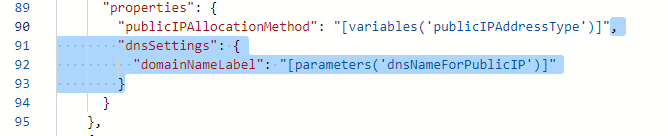 First of all remove the parameter fro the dnsName. We dont need FQDN for this lab.