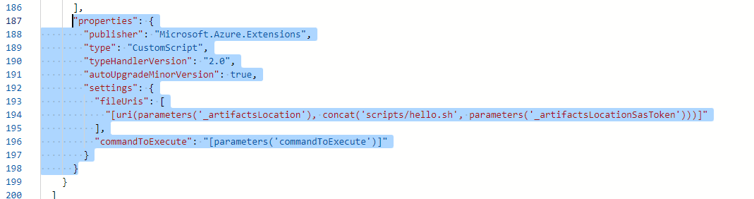 We are setting up an extension for our VM with the archive, which we uploaded to the container of our storage account.
