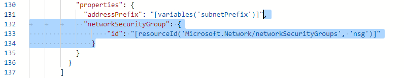 "id": "[resourceId('Microsoft.Network/networkSecurityGroups','nsg')]"