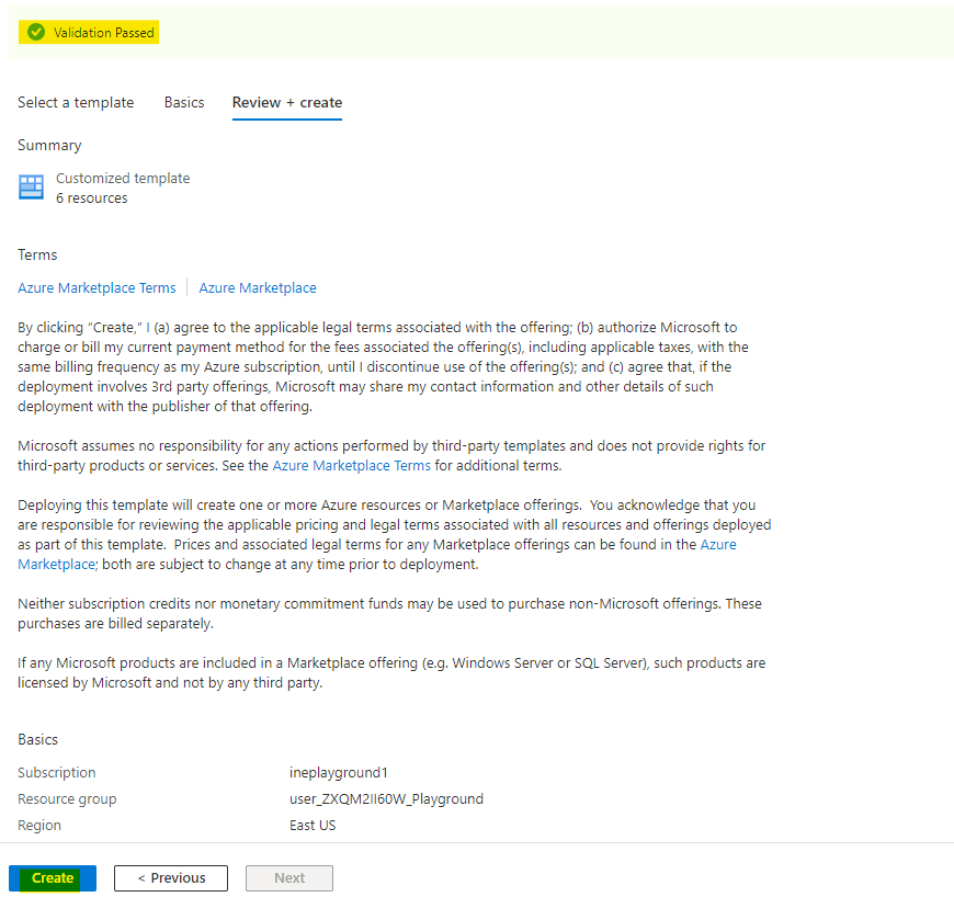 Azure will verify the template created by you. After checking, it will show you Validation Passed, if everything was done properly.