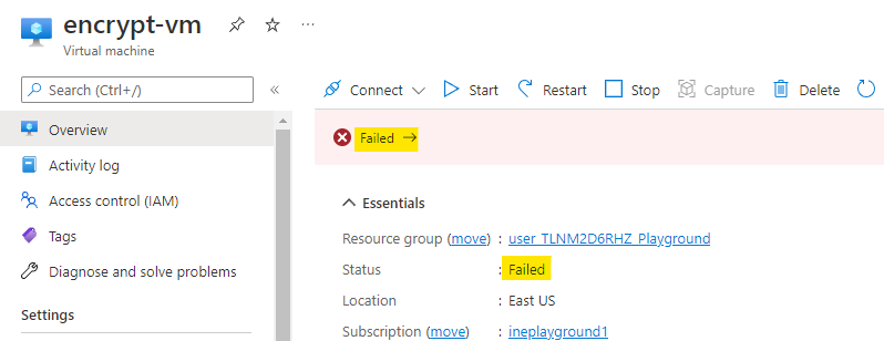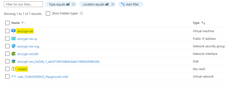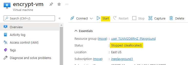 Go to the resource group and make a note of the name of virtual machine and key vault.