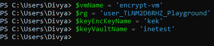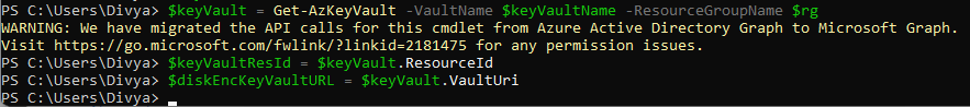 -DiskEncryptionKeyVaultUrl $diskEncKeyVaultURL -DiskEncryptionKeyVaultId $keyVaultResId `