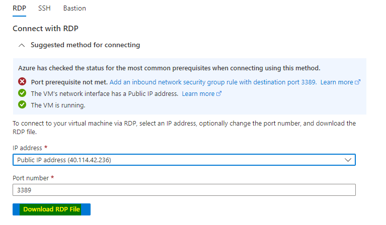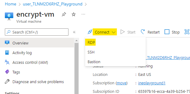 Go to your virtual machine and click on Connect. Choose the RDP option.