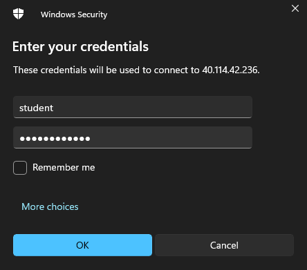 Click on Download RDP file, this will download a rdp file. Open the file with your rdp client.