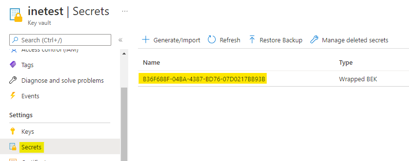 You can find out the disk encryption key in the secrets of the key vault. Open this secret.