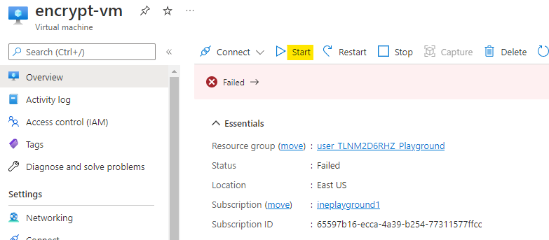 Note: It may take some time to recover the secret, so wait for few minutes before trying to start the virtual machine.