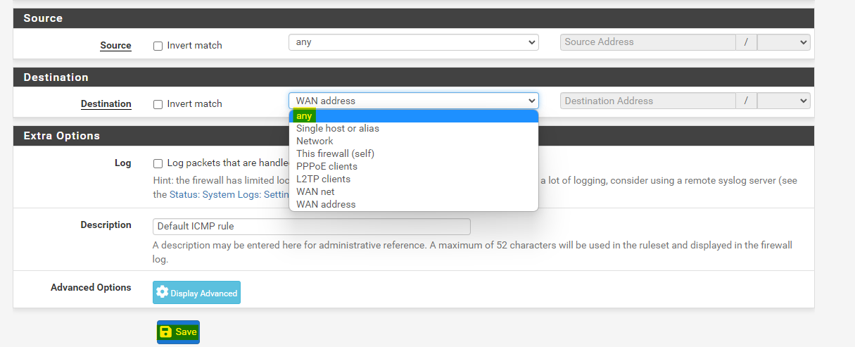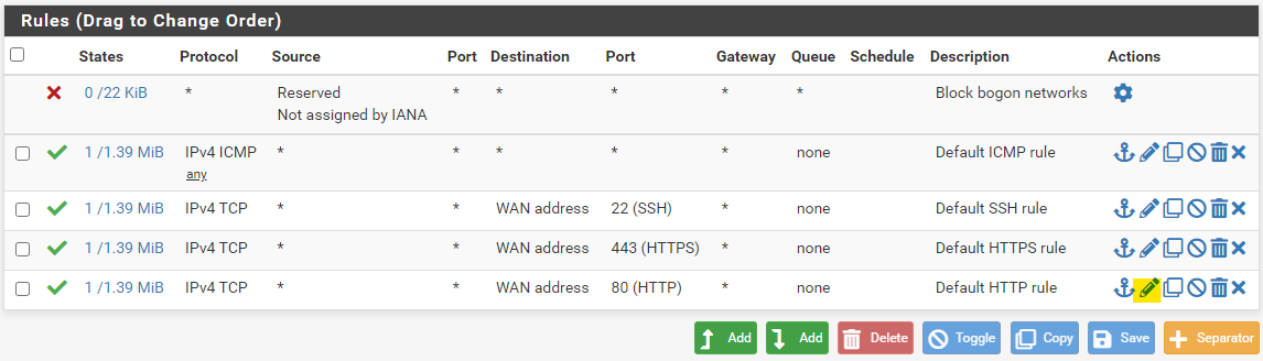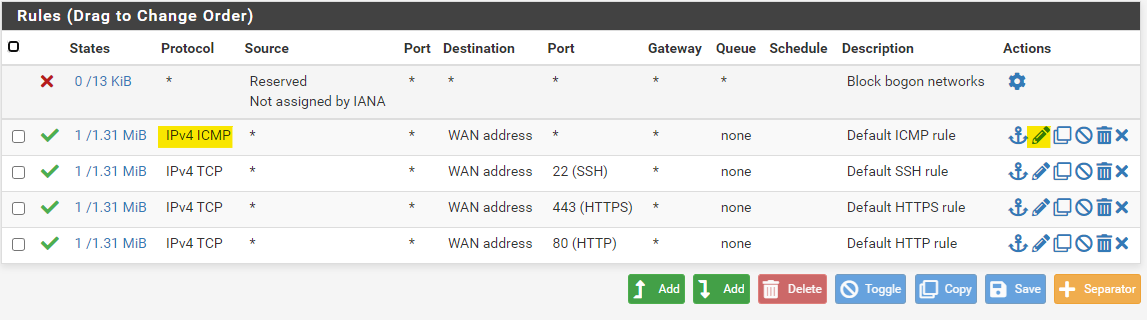 Click on the edit logo as highlighted below to edit the ICMP rule.