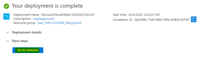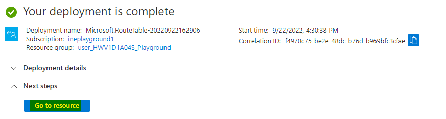 You will see Your deployment is complete which means route table is provisioned. You can click on Go to resource to check the resource.