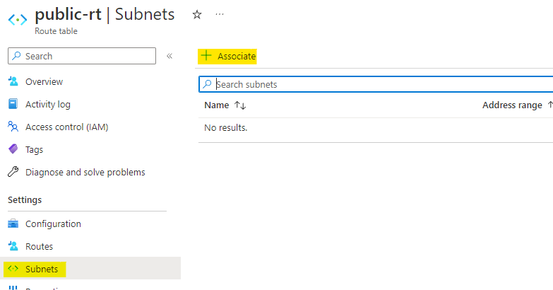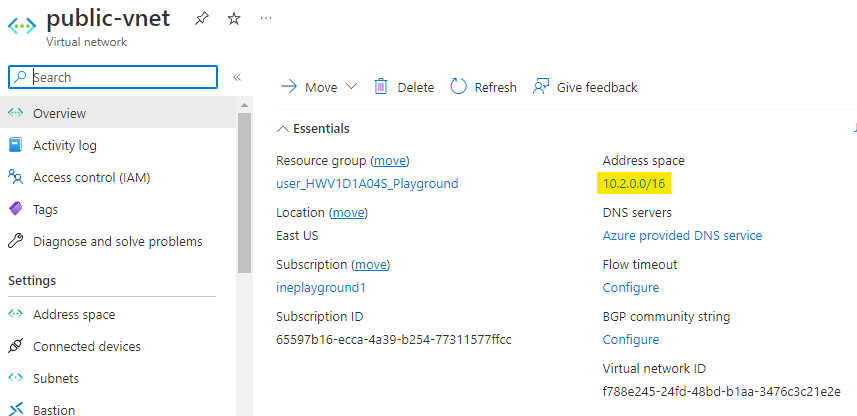 For adding the route we will need the address space for public-vnet. Navigate to public-vnet and copy the address space which is 10.2.0.0/16.
