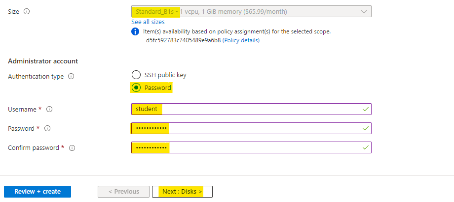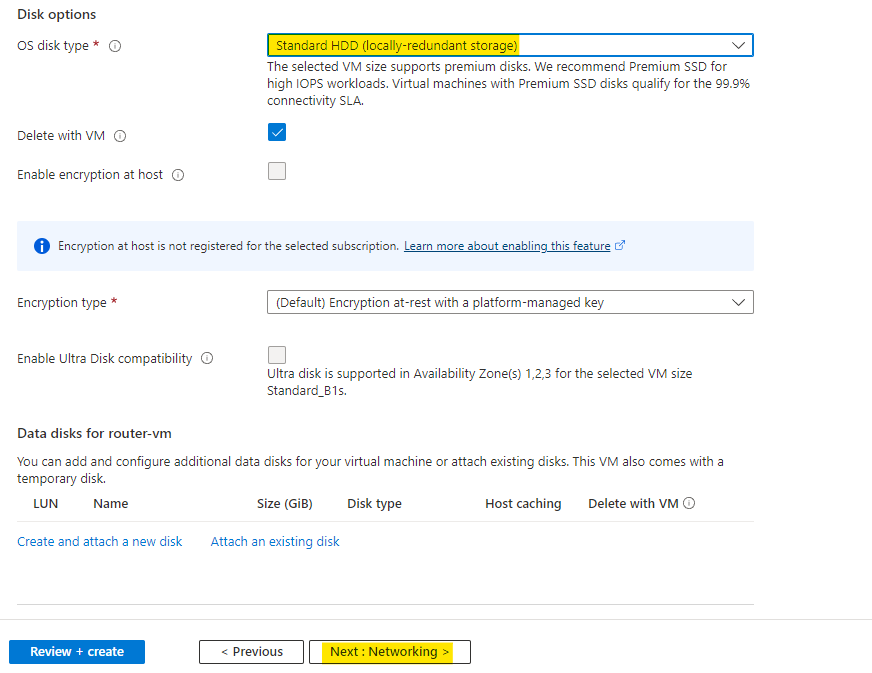 Select Standard HDD type of OS disk and click on Next to configure the networking.