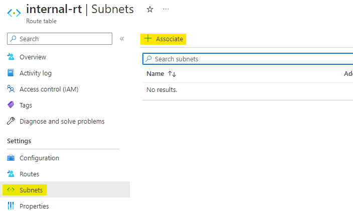Choose the virtual network as internal-vnet and the subnet as backoffice. Click on OK to associate route table with subnet.