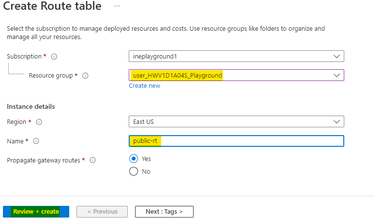 Azure will verify the configuration and it will show Validation passed. Click on Create to provision the route table.