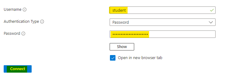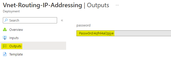 Open the outputs of this deployment and copy the password. This is the password for the pre deployed VMs.