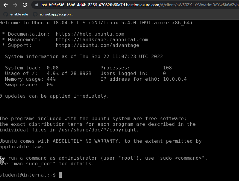 A new browser tab will open, where you will have a SSH connection to internal VM.