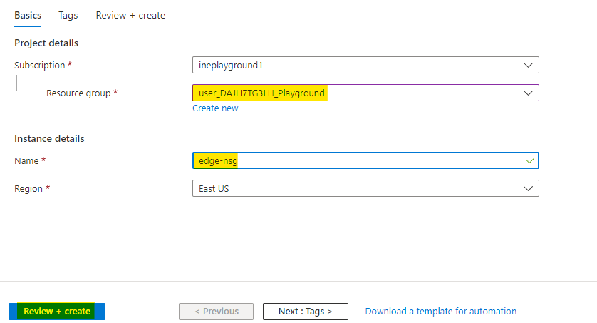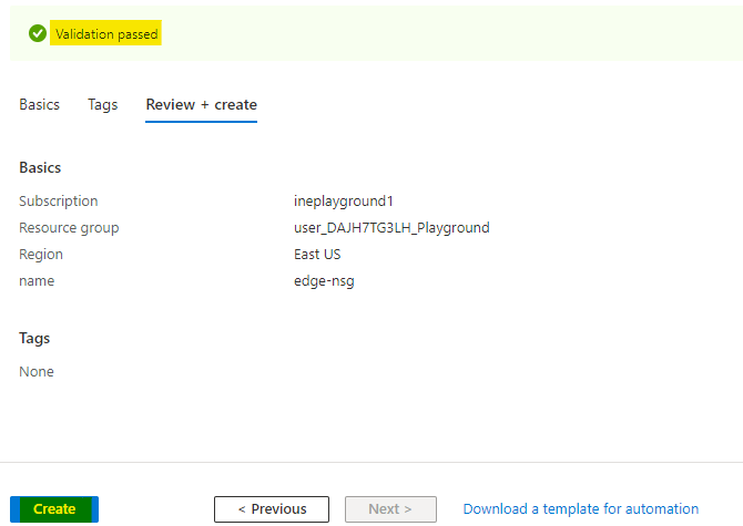 Azure will verify the configuration and it will show Validation passed. Click on Create to provision the NSG.