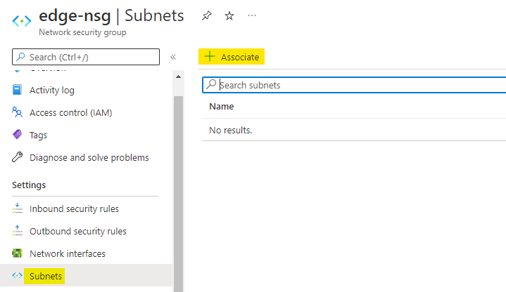 Now navigate to the Subnets of NSG and click on + Associate to associate this NSG with a subnet.