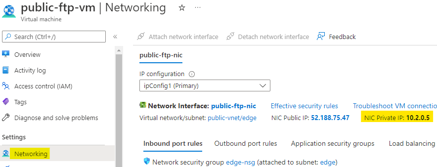 Go to the public-ftp-vm and note down private IP address of virtual machine.