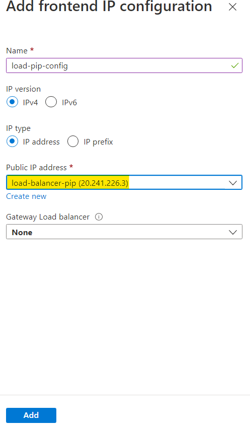 Here select the version as IPv4, then name it as load-balancer-pip. You can leave DNS label name empty.