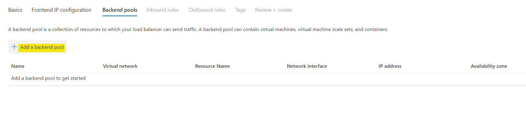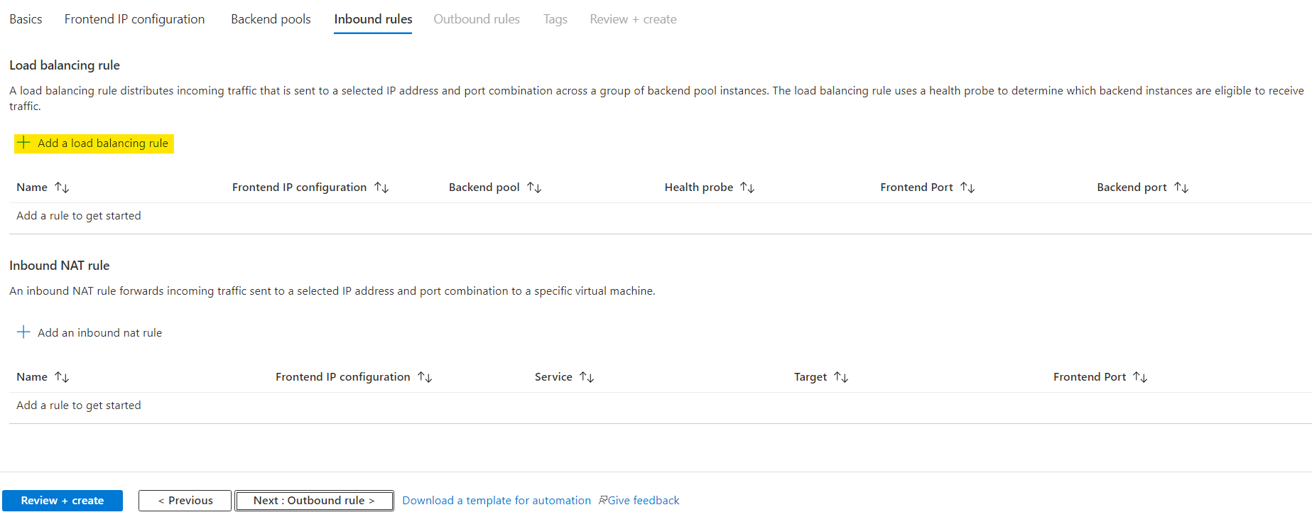 In the Inbound rules, you will see a option to add load balancing rule. Click on that as highlighted below.