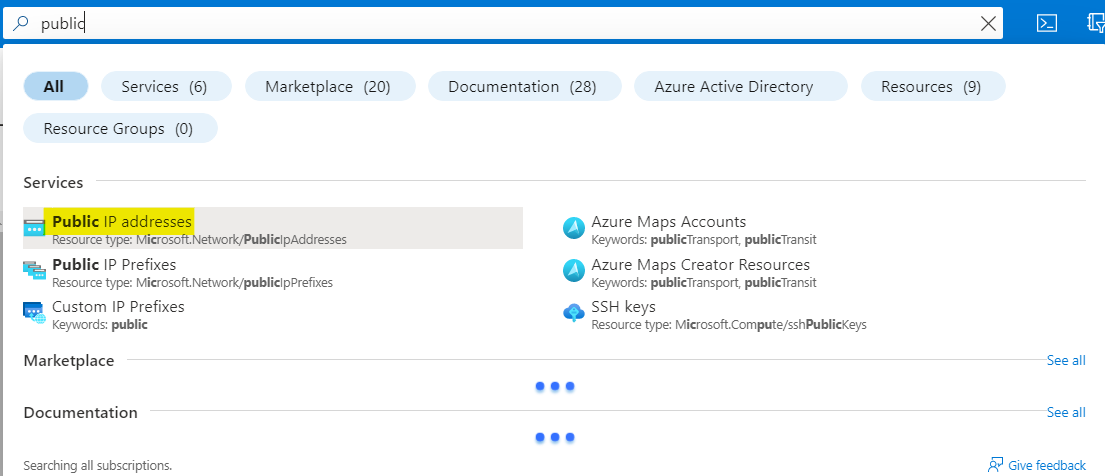 Now search for Public IP address you will see the service as highlighted in below image. Select this service.