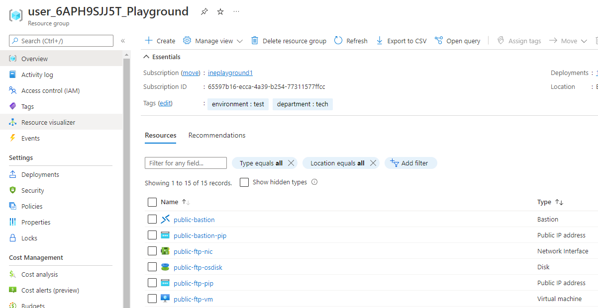 When you will login to the azure with the provided credentials, you will find some predeployed resources. This is all you will need for this lab.