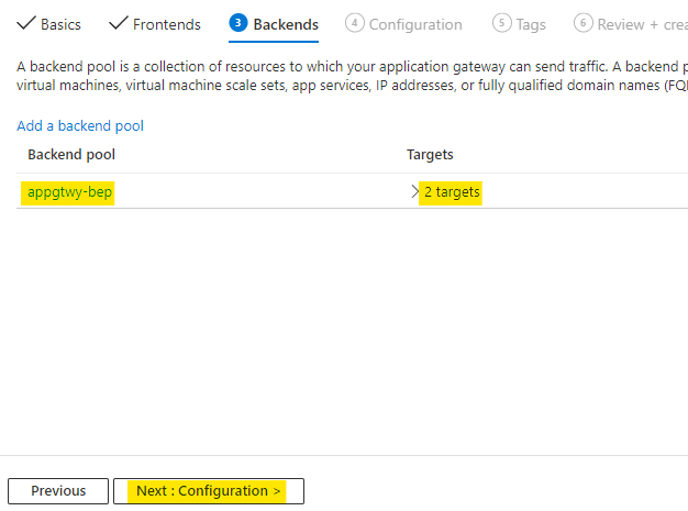 You will see that there are no backend pools, click on Add a backend pool to create one.