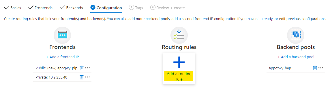 Now backend, frontend, and routing rules are all configured click on Next until Review + Create.