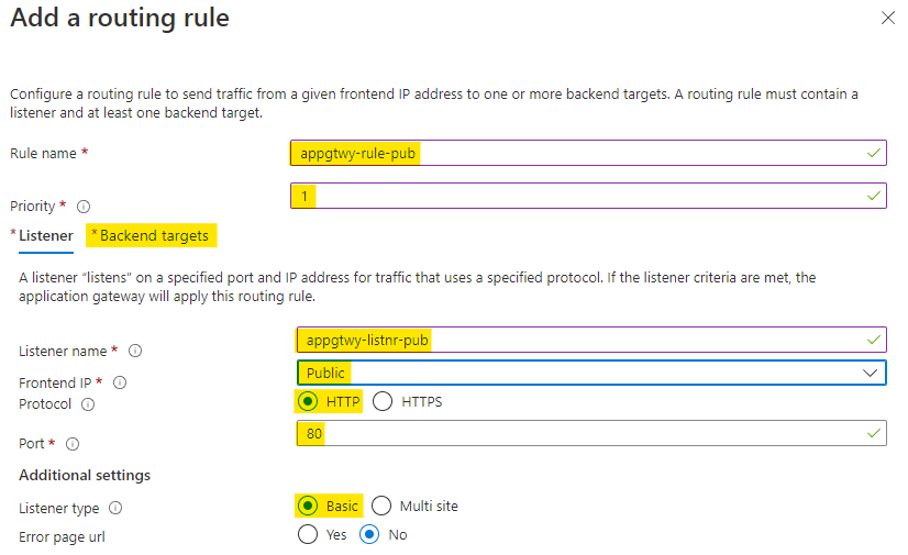 Name this rule as appgtwy-rile-pub and set the priority as 1