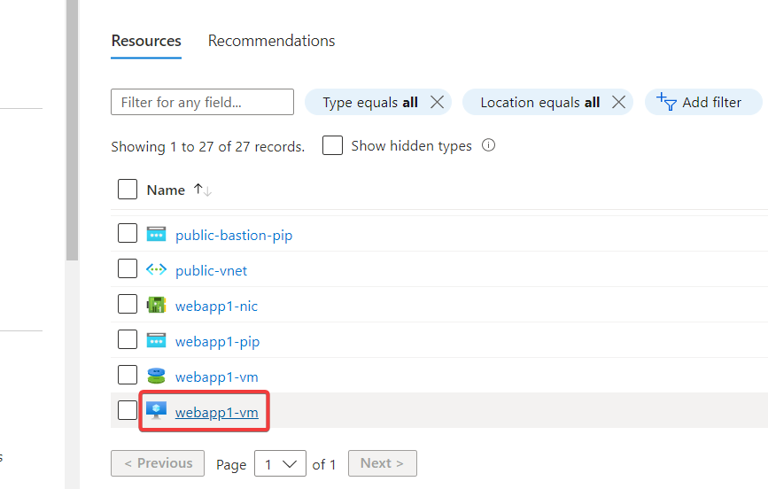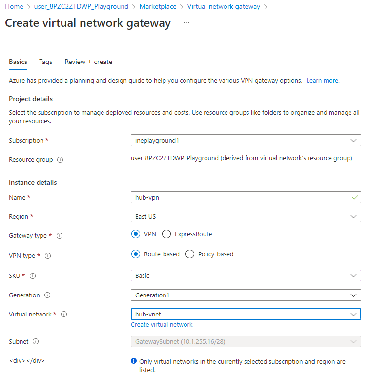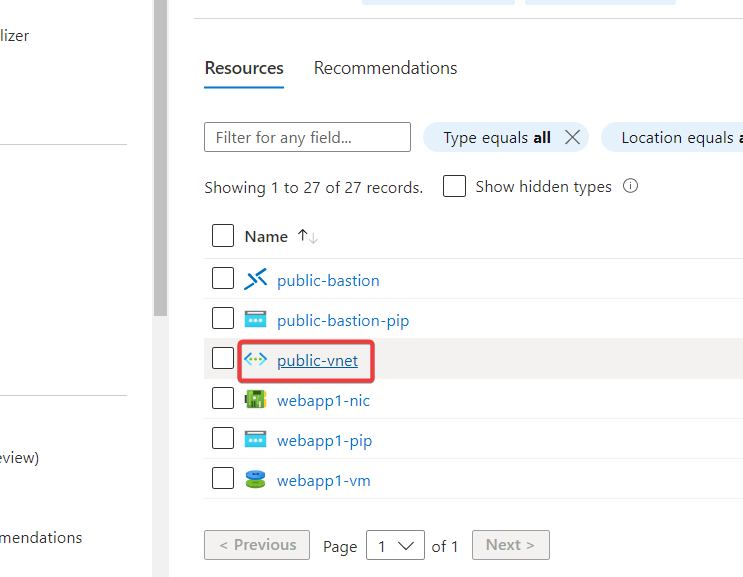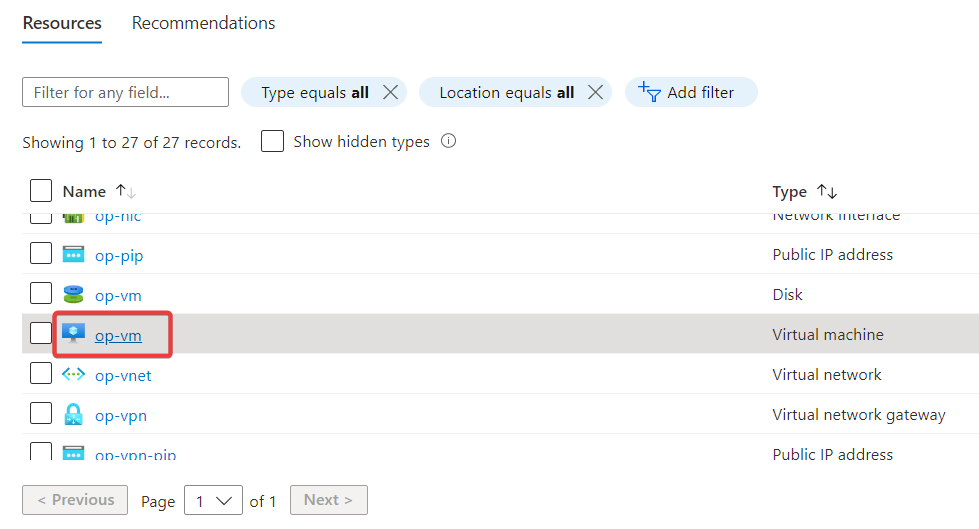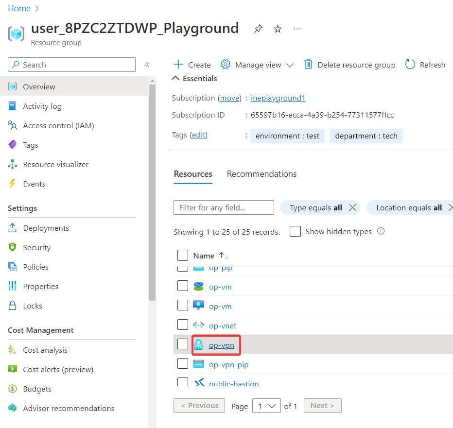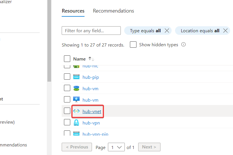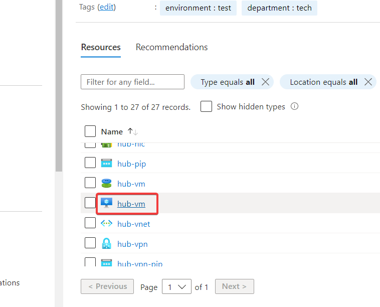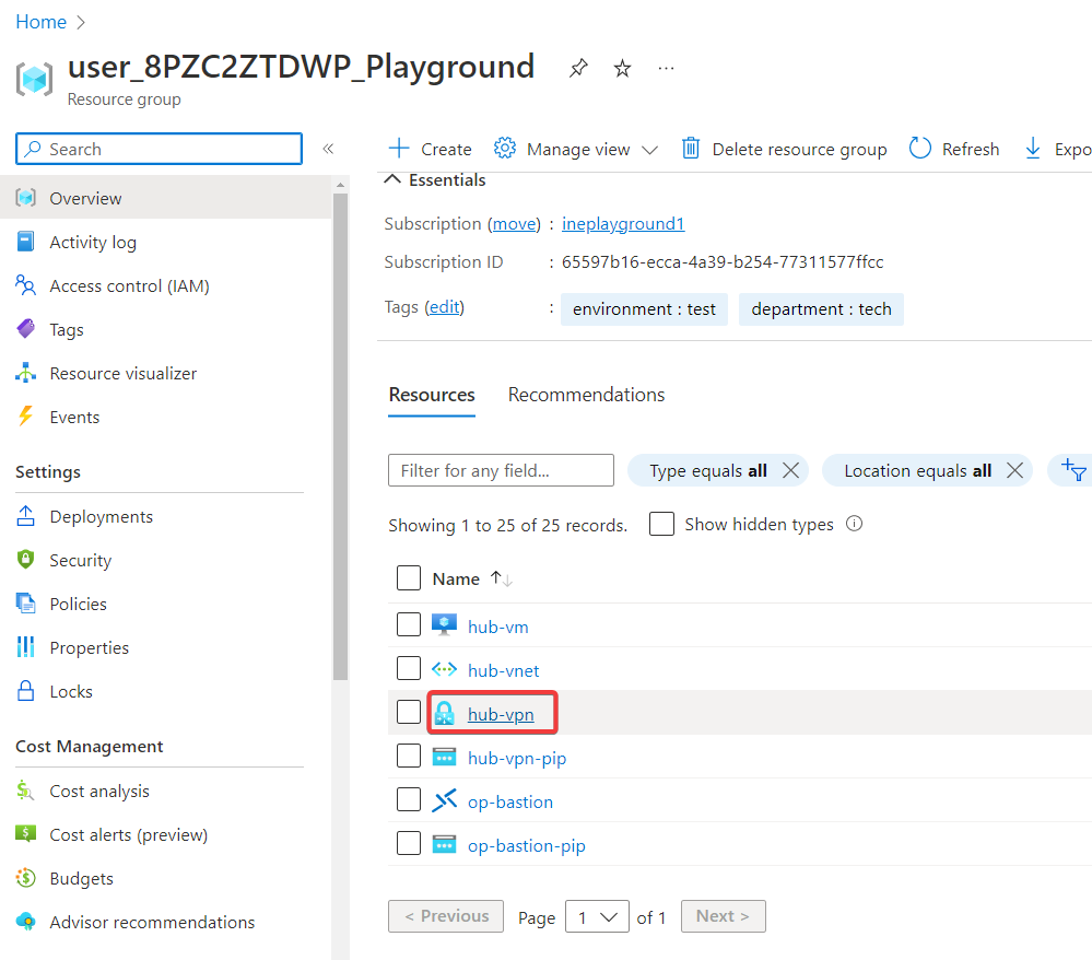 Once the deployment is completed, navigate back to resouce group and click on hub-vpn.
